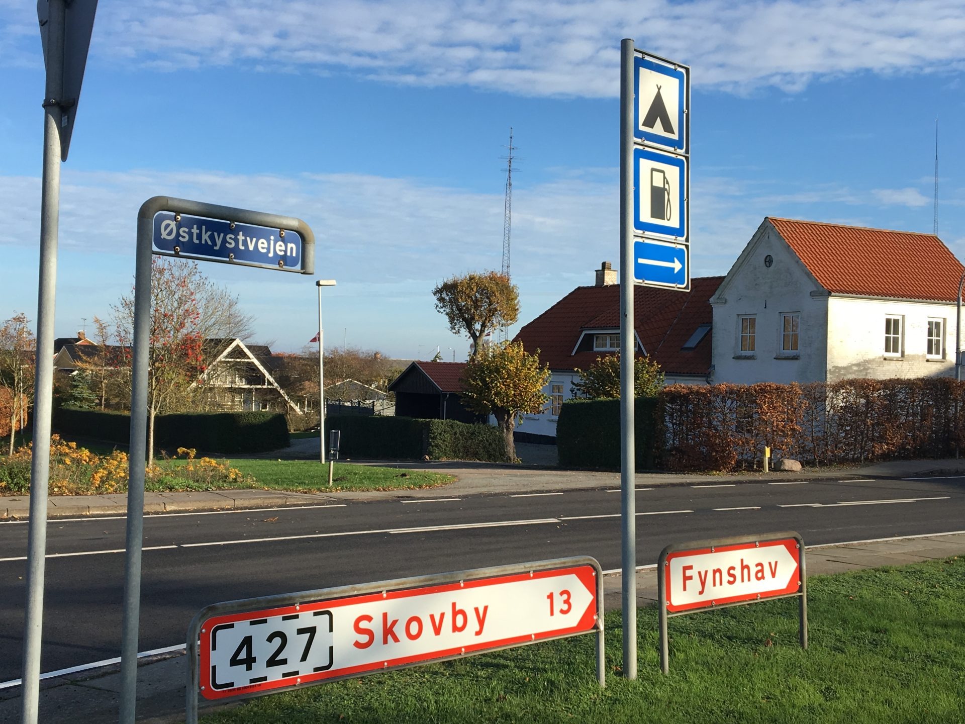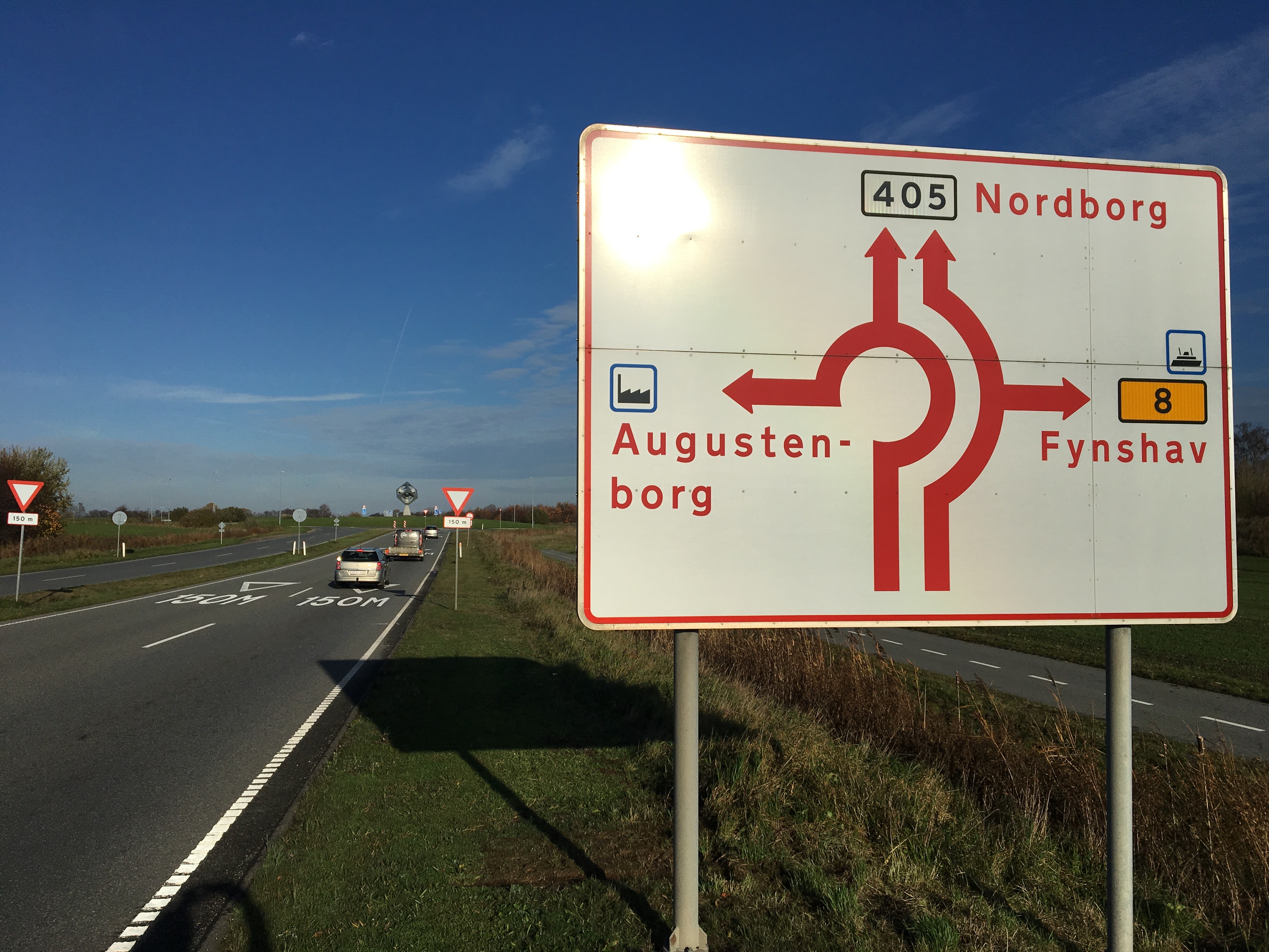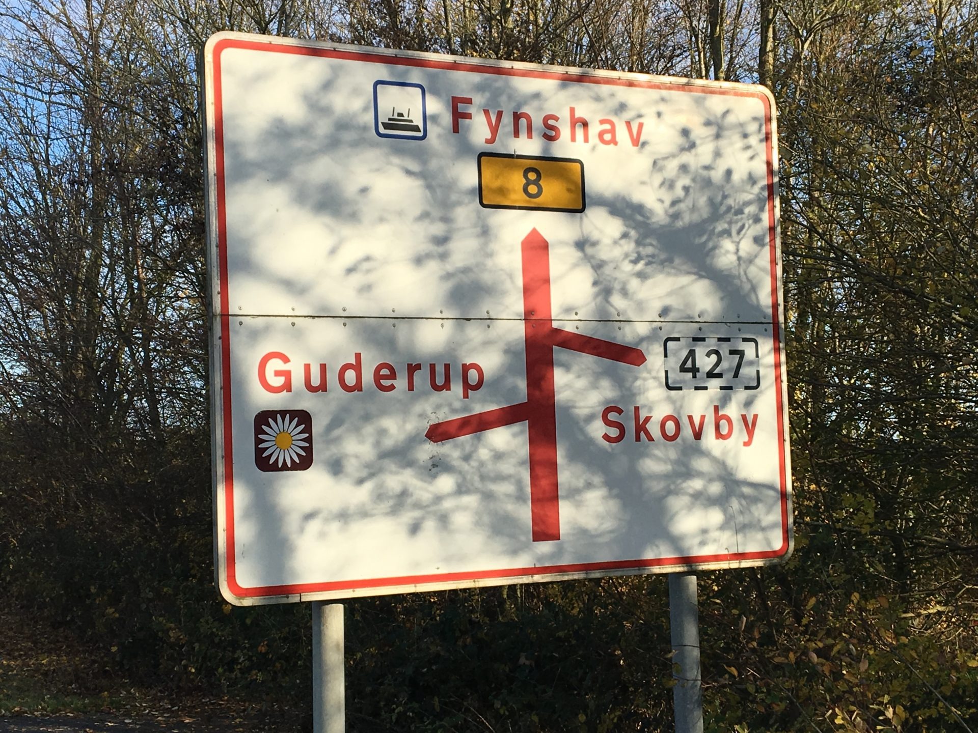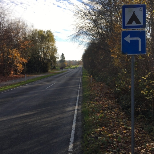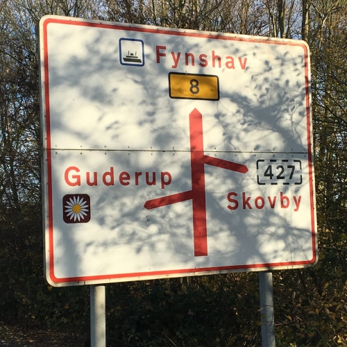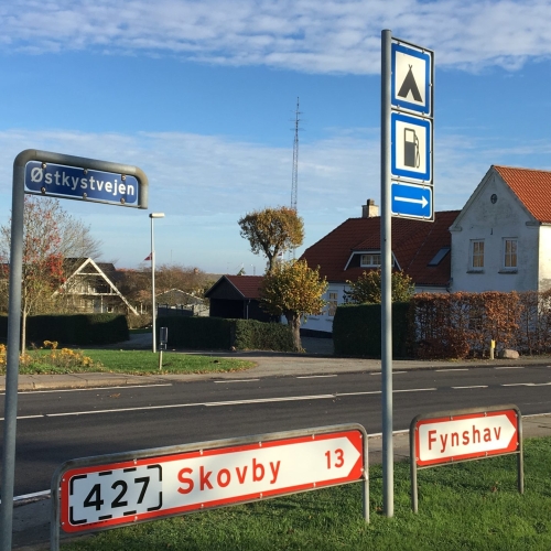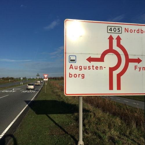 Fra Færgen kører I op ad bakken og drejer til venstre ad Rute 427.